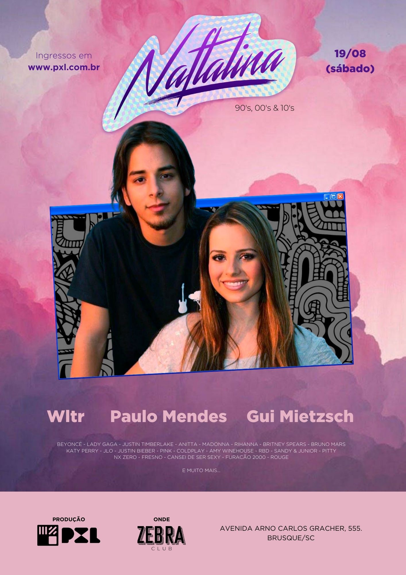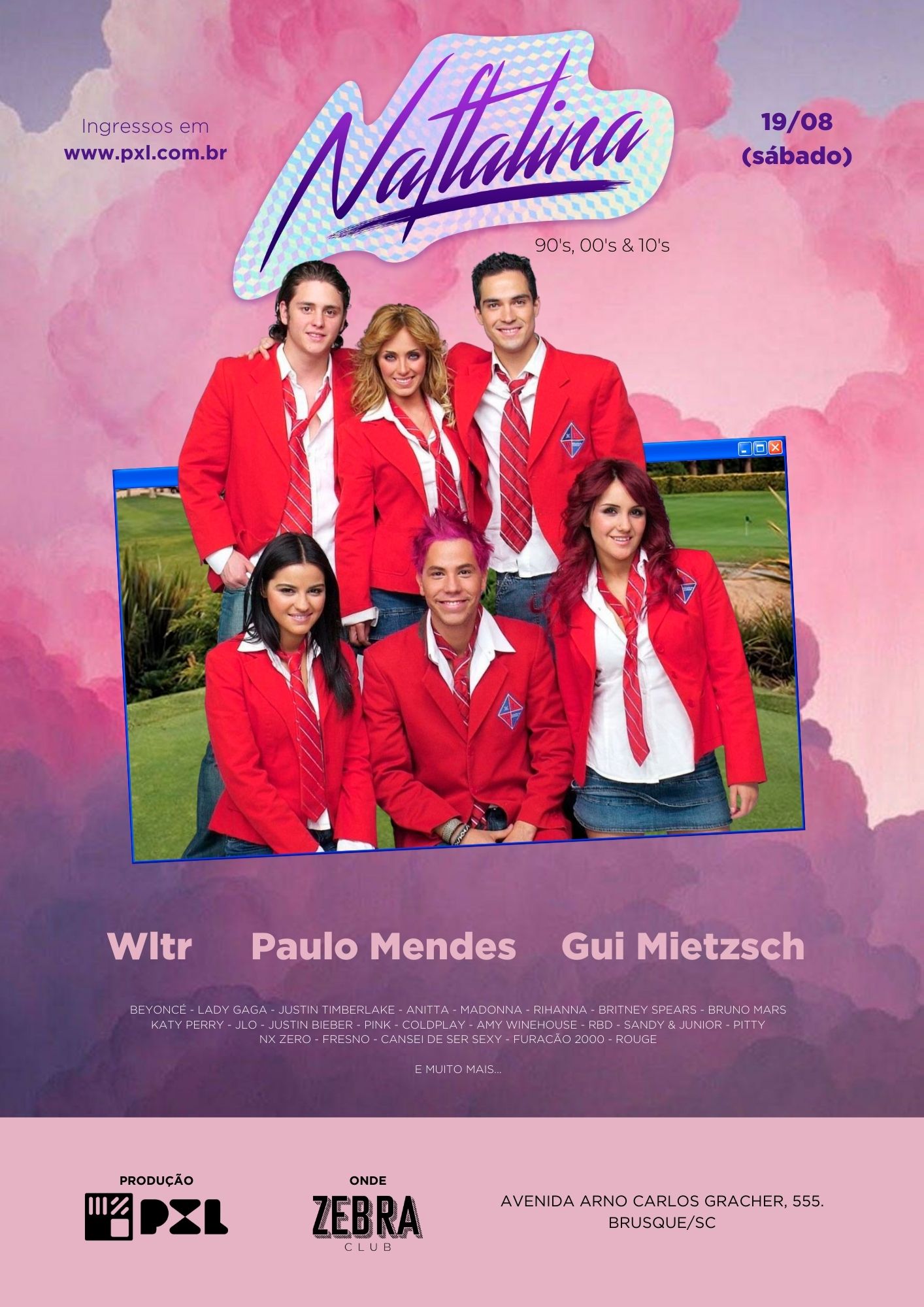 Beyoncé, Lady Gaga, Justin Timberlake, Anitta, Madonna, Rihanna, Britney Spears, Bruno Mars, Katy Perry, Jlo, Justin Bieber, Pink, Coldplay, Amy Winehouse, Rbd, Sandy & Junior, Pitty, Nx Zero, Fresno, Cansei De Ser Sexy, Furacão 2000, Rouge e muito mais…